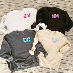 Sweatshirt comes with houndstooth print monogram with distressed frayed edge monogram. Comes in sizes: Small, Med, Large, XLarge, XXL, XXXL